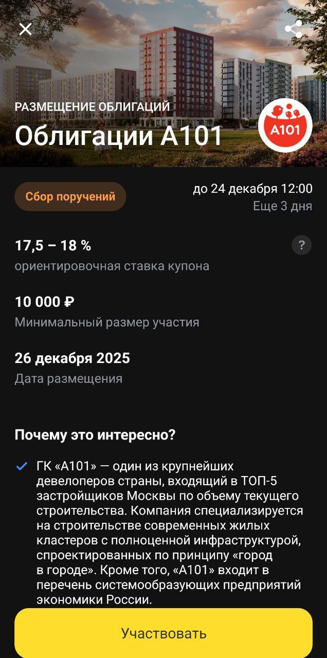 🪙«А101» привлекает инвестиции для динамичного роста: объявляет о размещении двух выпусков биржевых облигаций с привлекательными условиями.