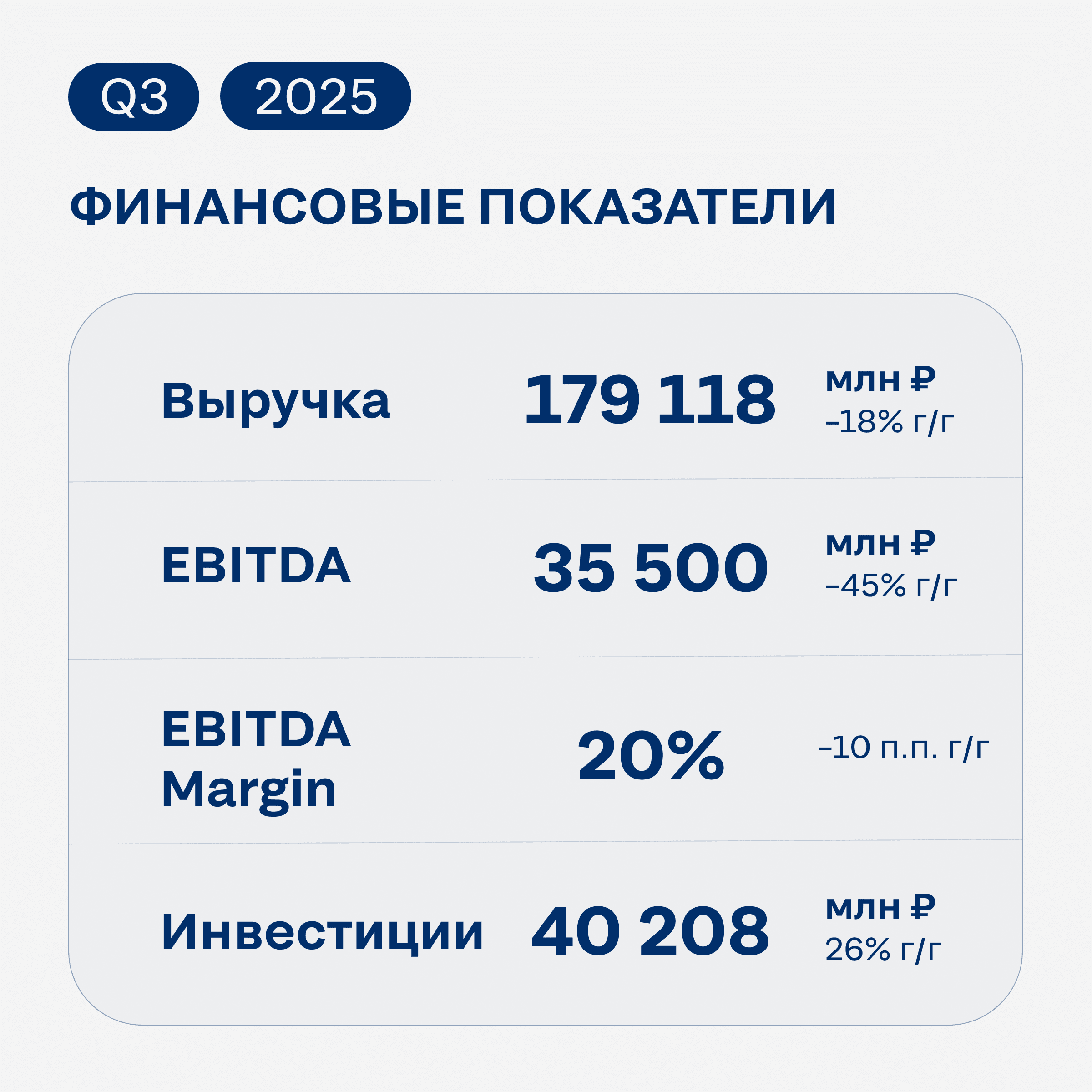 Важно подчеркнуть, что благодаря системной работе над операционной эффективностью и поддержанию одной из самых низких в отрасли себестоимостей производства, компания сохраняет прибыльность. Так, в 3К 2025 года показатель EBITDA составил 35 500 млн руб. Пусть он и на 45% ниже г/г, рентабельность по EBITDA в 20% подтверждает фундаментальную устойчивость нашей бизнес-модели.