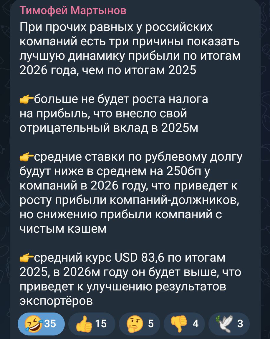 1. Больше не будет роста налога на прибыль, что внесло свой отрицательный вклад в 2025м.