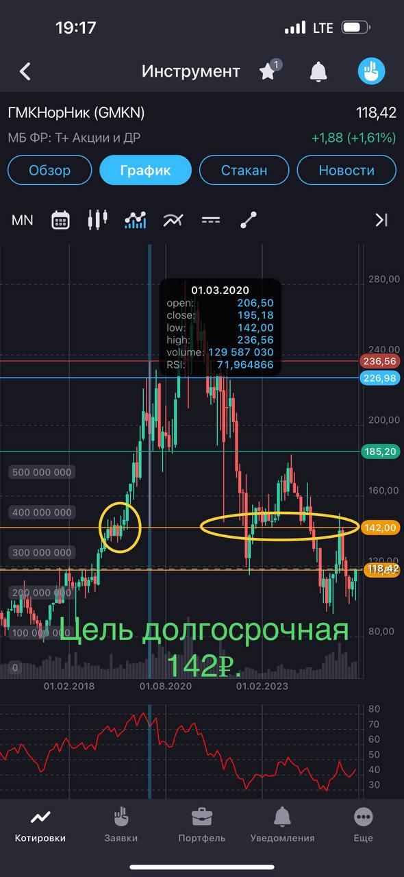 2. Жду ярких движений в ГМК. Цель ( долгосрочная ) - 142₽.