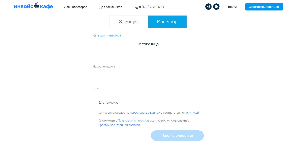 Дальше регистрируетесь на сайте, выбрав кнопку «Инвестор», категорию инвестора, например, «частное лицо» и указав телефон и e-mail: