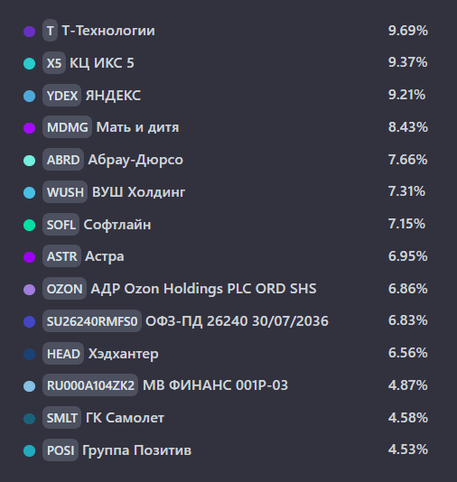 • Акции Ozon Holdings PLC - долю планирую увеличить после процесса редомициляции, а пока на время можно про них забыть.