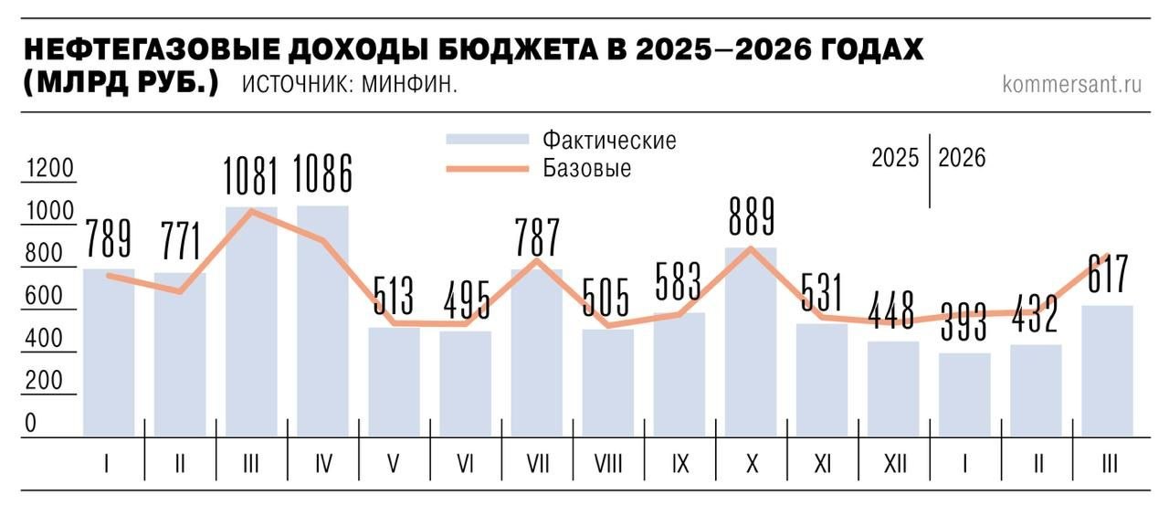 🪙 В марте нефтегазовые доходы составили ₽617 млрд, снизившись на 43% г/г, а по итогам I кв на 45%. При этом благодаря мартовской цене Urals нефтегазовые доходы бюджета в апреле могут вырасти до ₽1,1–1,2 трлн.
