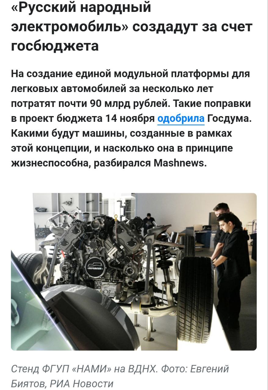 Речь идёт о субсидиях научному институту «НАМИ» на проект, который власти называли «русским народным электромобилем».