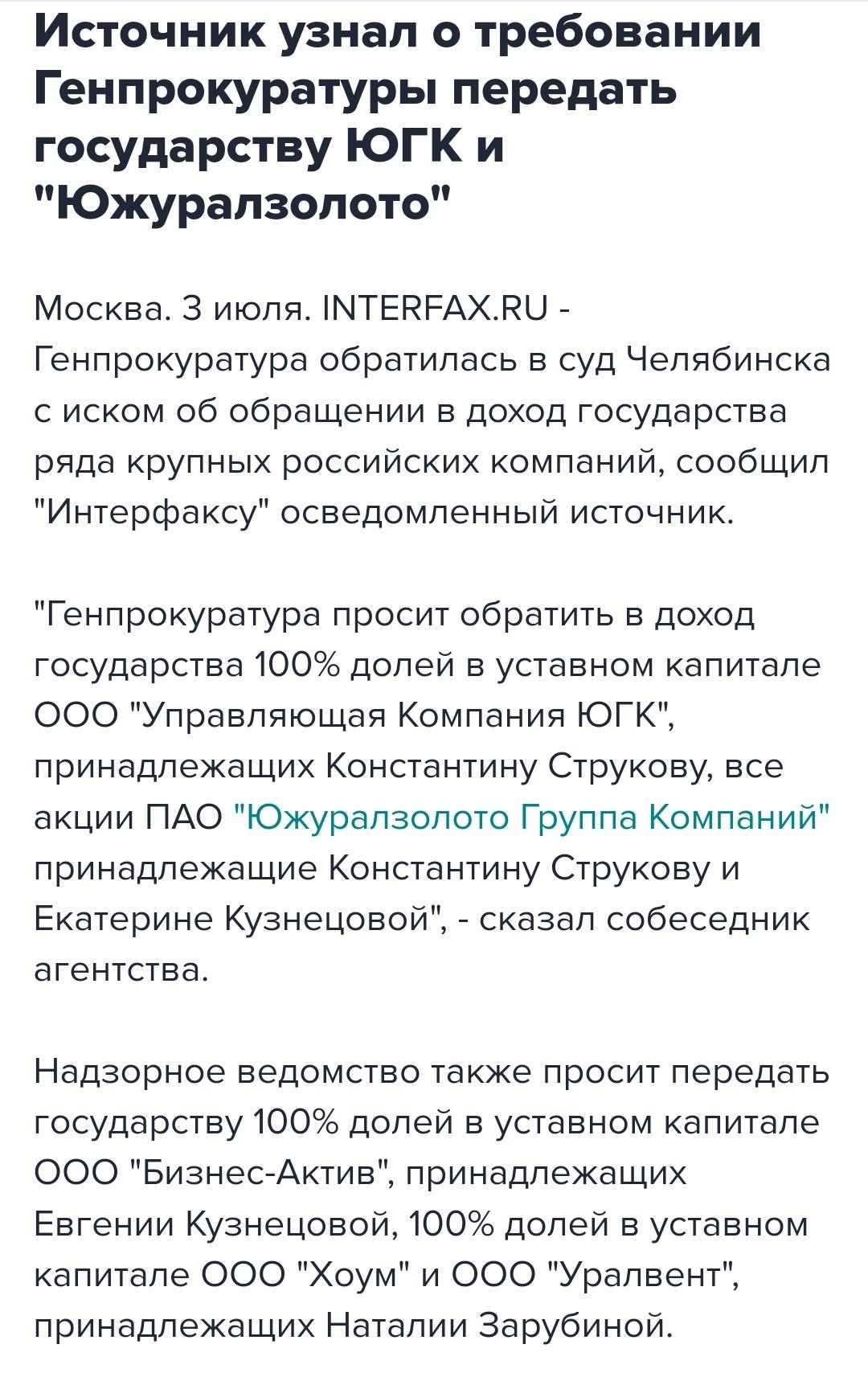 2–4 июля Генпрокуратура подаёт иск в Советский райсуд Челябинска. Требование — изъять акции ЮГК у мажоритариев, включая самого Константина Струкова. Якобы бизнес построен с нарушениями, и теперь государство хочет вернуть активы.