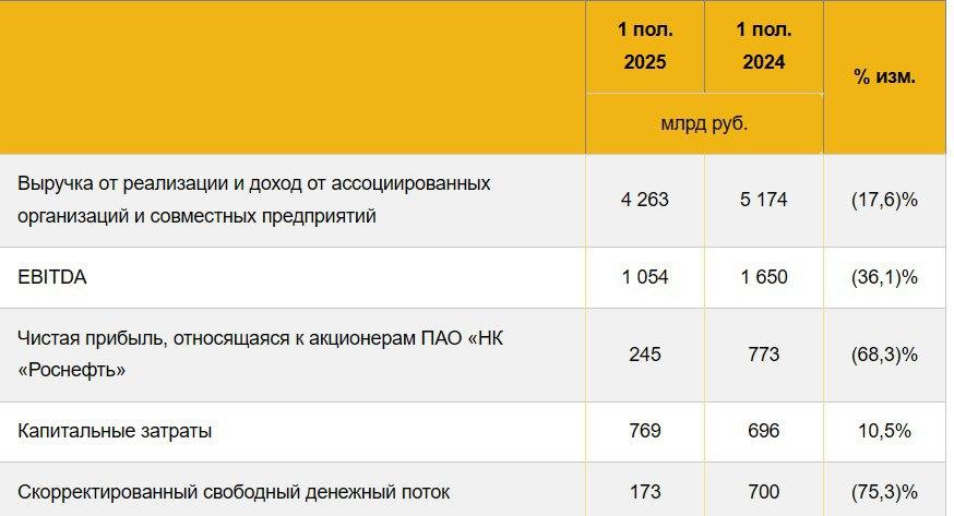 🪙 Роснефть МСФО 6 мес 2025 г: