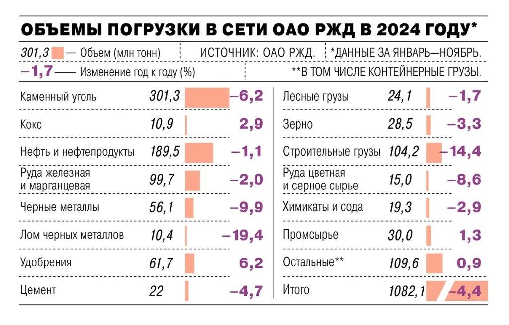🎄Погрузка на сети РЖД по итогам года может сократиться на 4%, вместо ожидаемого раннее роста в 2,7% – Ъ