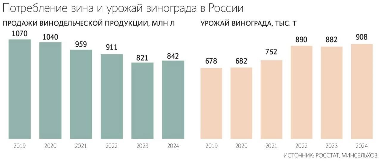 🪙 Производство вина в России в 2025 году растет, но темпы скромнее, чем в 2024 году: отрасль сталкивается с последствиями повышения акцизов и погодных рисков – Ведомости.